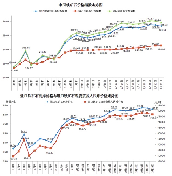 自去年以來,鐵礦石價格不斷上漲,漲幅高達(dá)84%,今年迄今又上漲了21%,遠(yuǎn)遠(yuǎn)超過了高盛公司原先預(yù)測的每噸50美元至60美元的價格區(qū)間。